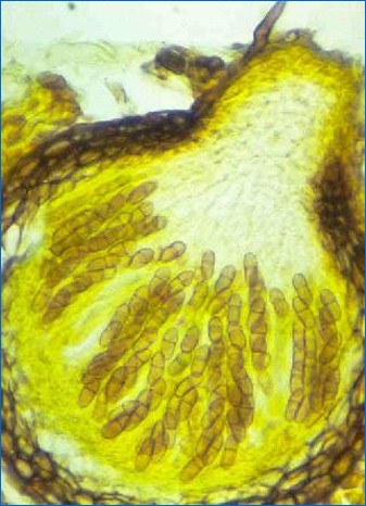 Podstawowym źródłem infekcji pierwotnych są zarodniki workowe wytwarzane w pseudotecjach, które rozwijają się w opadłych, porażonych liściach jabłoni. Pseudotecja są kuliste, ciemne, często widoczne gołym okiem jako drobne, czarne wzniesienia na powierzchni martwych liści. Wewnątrz pseudotecjów powstają worki zawierające po osiem zarodników workowych.